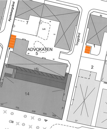 Antalet p-platser, som du ser markerade i orange på ritningen nedan, är starkt begränsat och täcker inte behovet. Därför vill vi minimera risken att platserna används som långtids-parkering