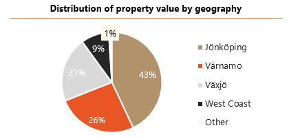 Nivika is a fast-growing property company with focus on long-term ownership, efficient new development and with an investment strategy with purpose of being flexible and adaptable towards the property market. The Company’s main objectives are owning, managing, and developing properties. The Company primarily operates in Jönköping, Värnamo and Växjö and, to an increasing extent, also in western and southern Sweden, including Helsingborg, Halmstad and Varberg. Nivika is headquartered in Värnamo and was founded in year 2000 by the Company’s current CEO respective a member of the Board of Directors, also the current principal owners[2], spouses Niclas Bergman and Viktoria Bergman. As of 31 August 2021, Nivika owned properties valued at MSEK 6,910, of which residential properties and community and social properties composed approximately 35 percent of the property value. The remaining property value was attributable to commercial properties with emphasis on industrial and logistics and offices.